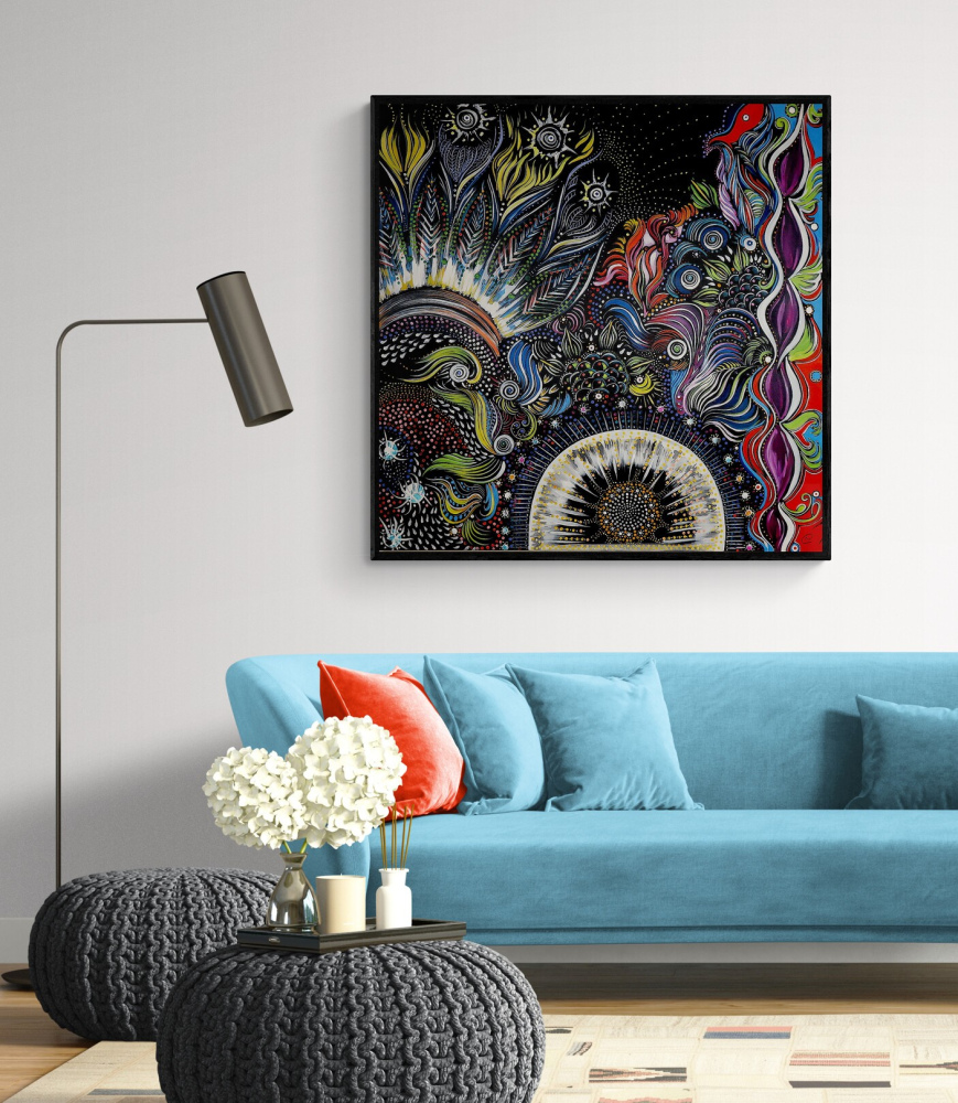 Les bords de l'œuvre sont peints pour un rendu esthétique, un encadrement n'est donc pas nécessaire.