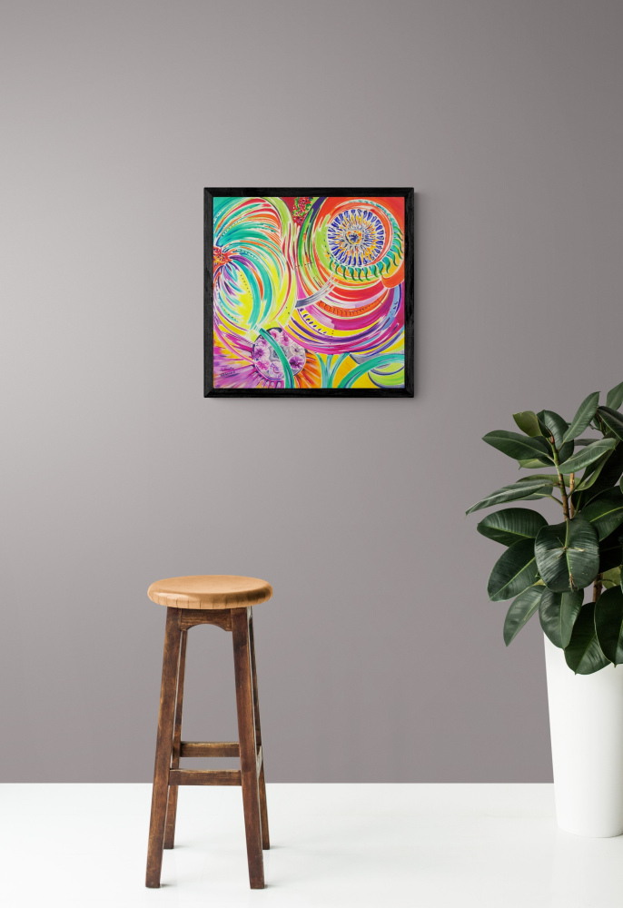 Les bords de l'œuvre sont peints pour un rendu esthétique, un encadrement n'est donc pas nécessaire.