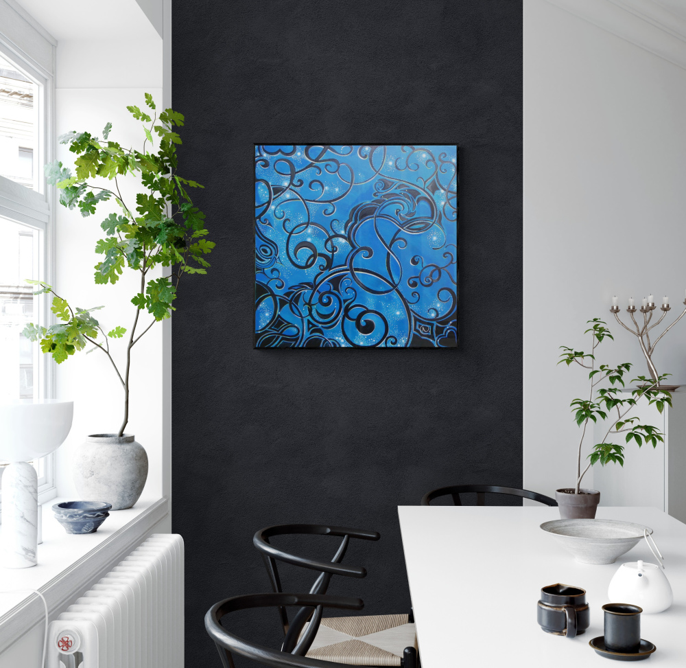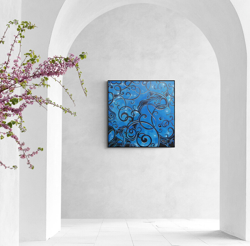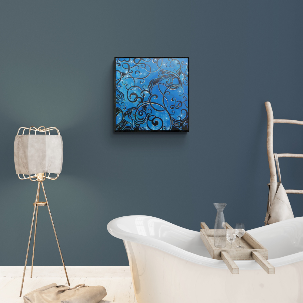 Les bords de l'œuvre sont peints pour un rendu esthétique, un châssis n'est donc pas nécessaire.