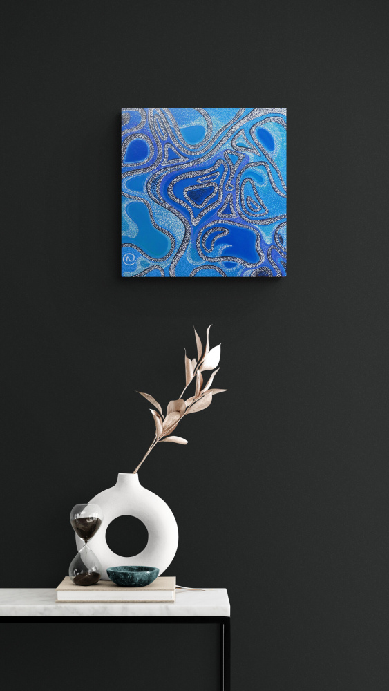 Inspiration Aborigène, petite taille, Bleu, Disponible, Oeuvres 2024 |