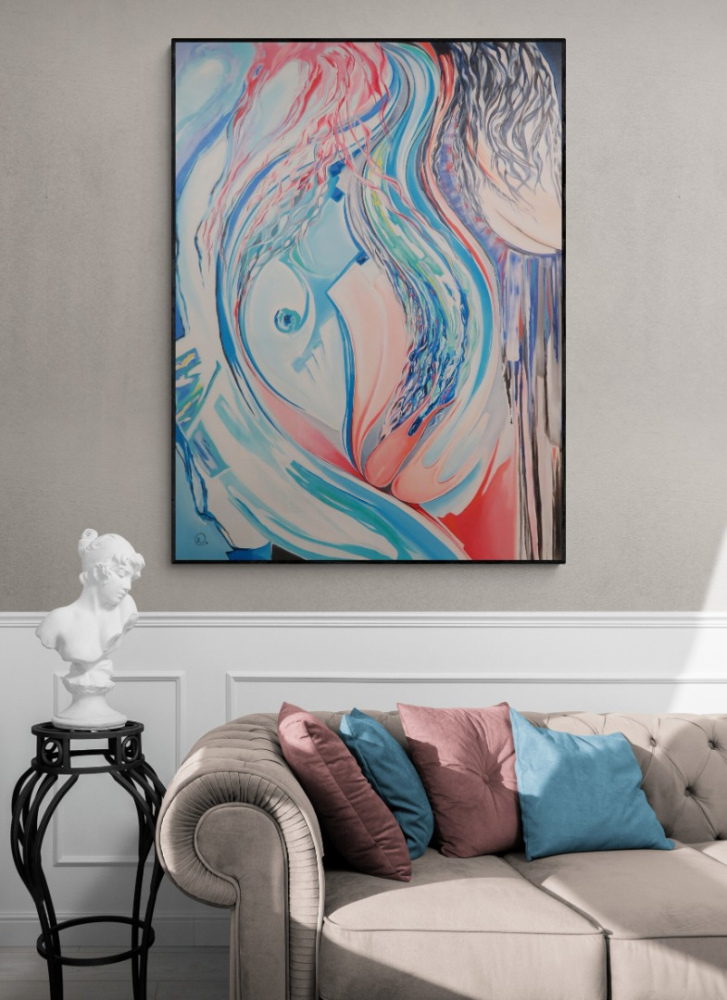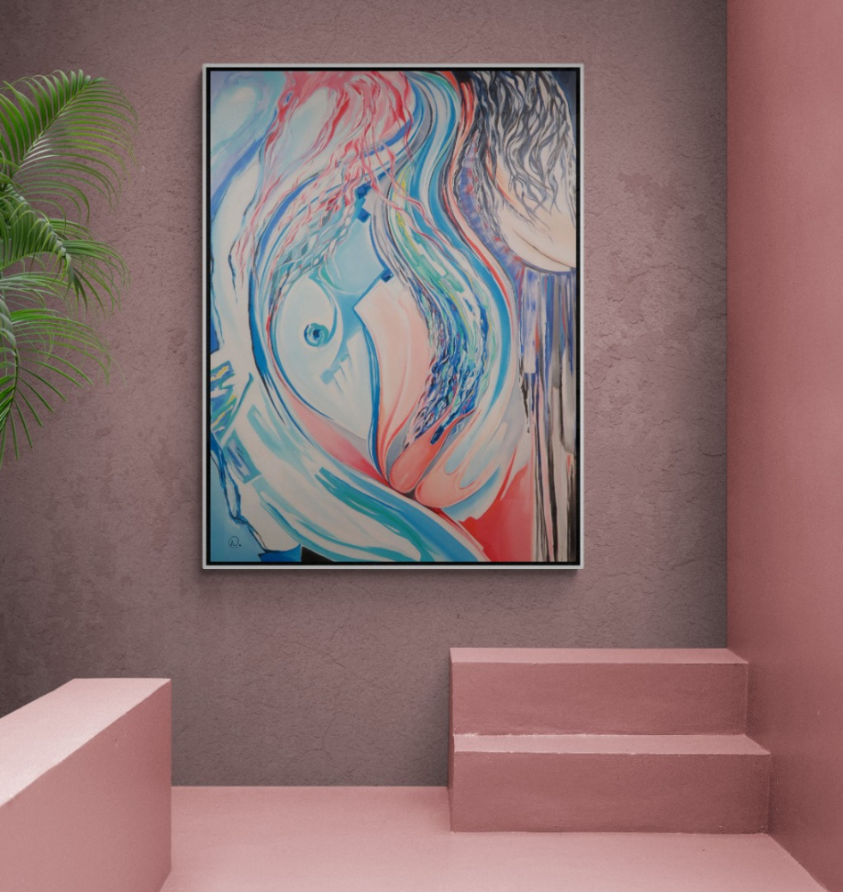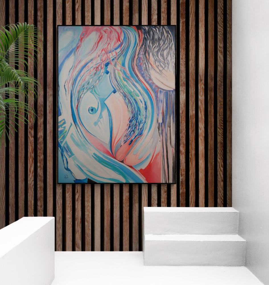 Les bords de l'œuvre sont peints pour un rendu esthétique, un châssis n'est pas nécessaire.