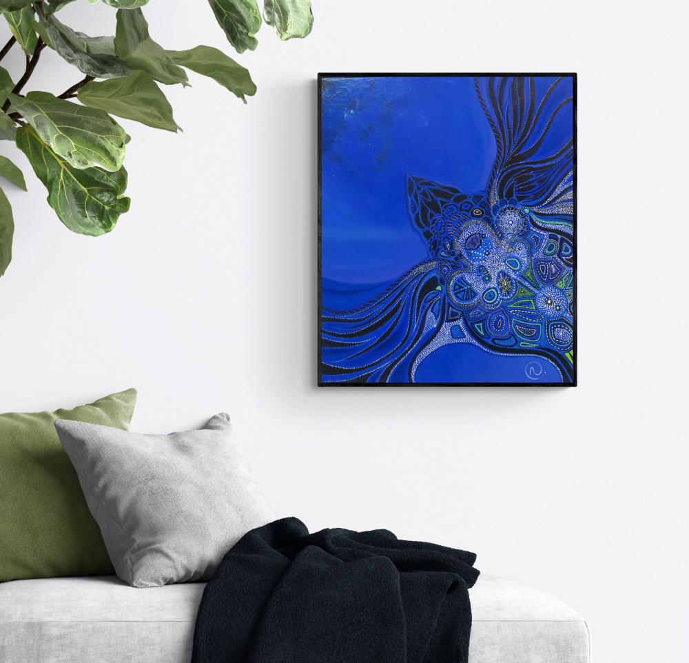Les bords de l'œuvre sont peints pour un rendu esthétique, un châssis n'est donc pas nécessaire.