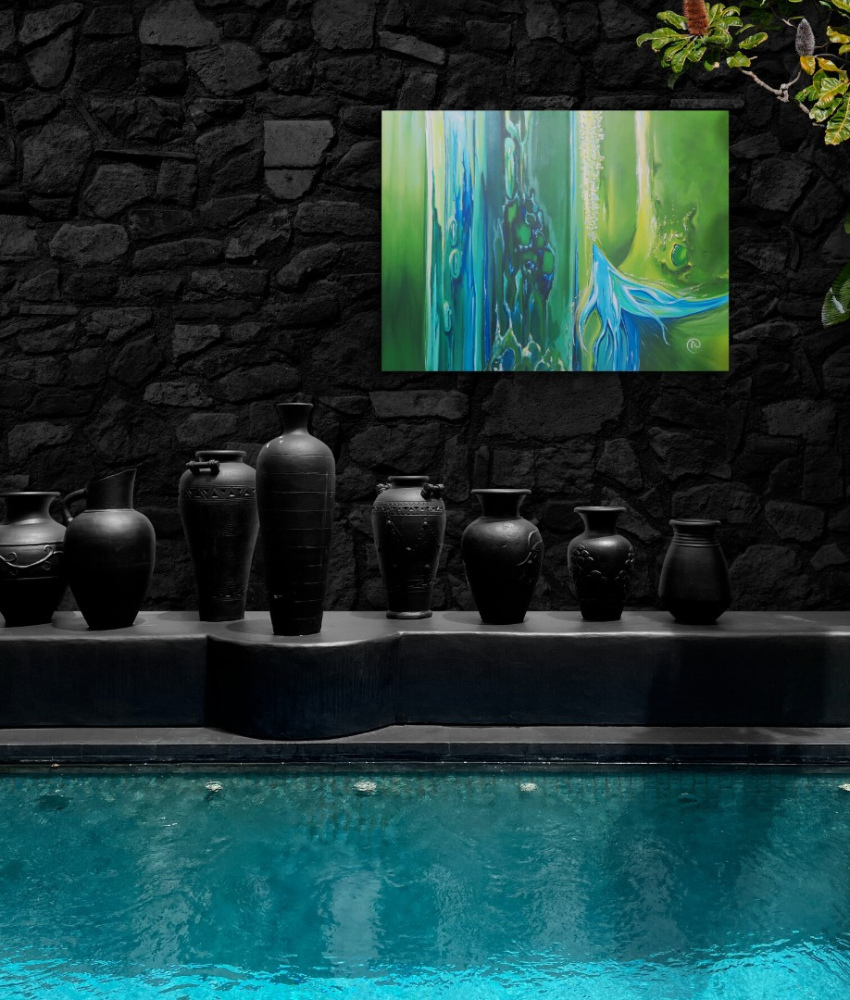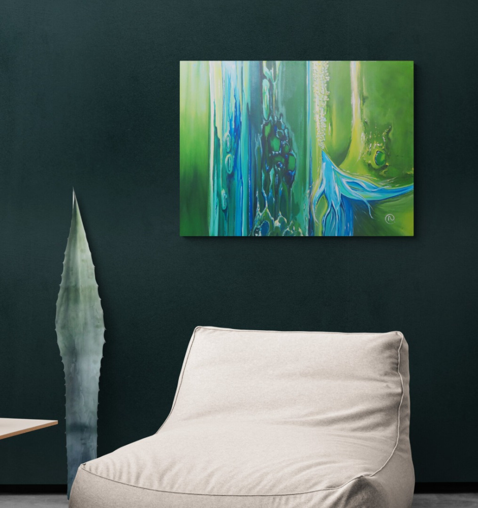 C'est toute une panoplie de dégradés de verts et de bleus que révèle cette toile.