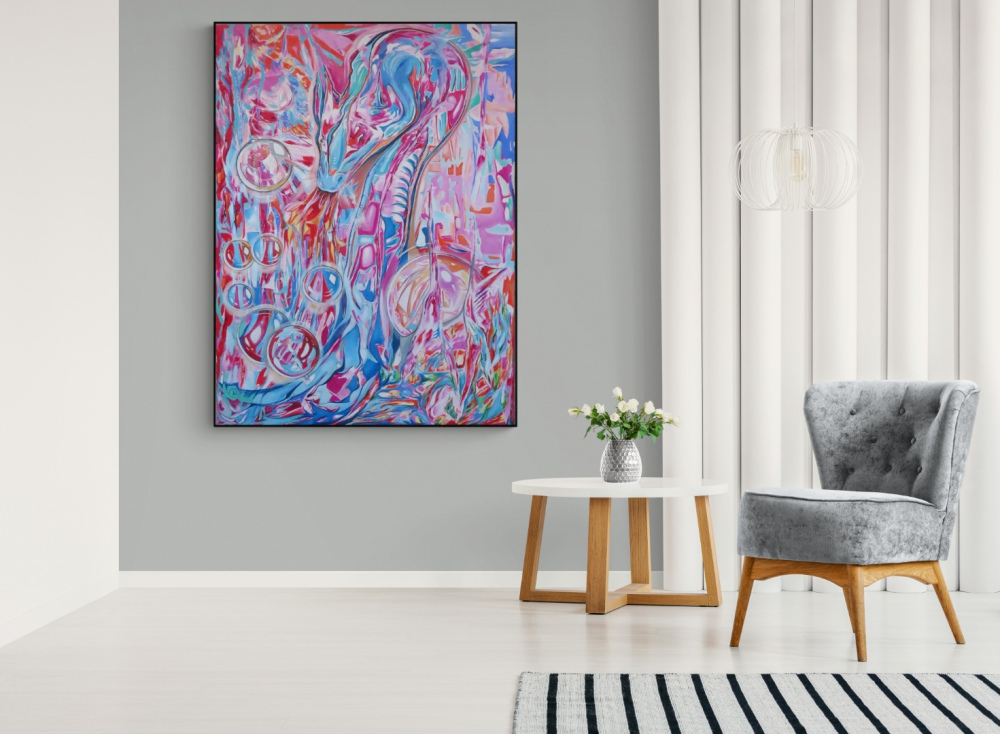 Les bords de l'œuvre sont peints pour un rendu esthétique, un encadrement n'est donc pas nécessaire.